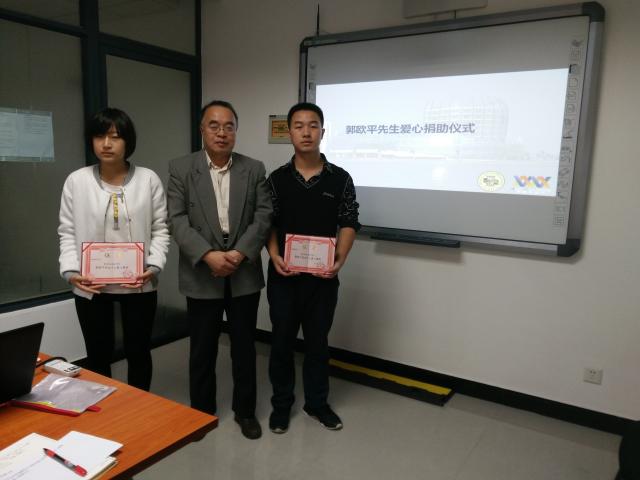11月14日下午,校友郭欧平先生爱心捐助仪式在松江校区举行,纺织学院2名本科生获得资助。