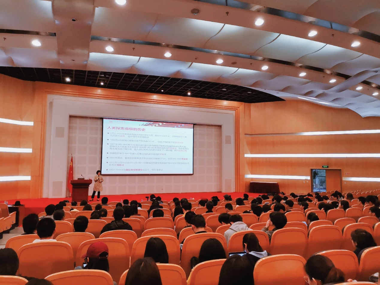 讲座中,她从“人类探索南极的历史”“探索南极的意义”“中国在南极的足迹”等篇章展开,聚焦中国第5个南极科学考察站科考任务,重点介绍了“企鹅聚居区保护区选划”“工程勘探”“恩科斯堡岛新站建设方案”等内容,通过图文视频相结合的讲述方式,围绕科考队的行程安排、学习生活、实地作业、南极科考感受等作生动形象得“场景再现”,真实还原了南极科考的重要性及艰苦性。