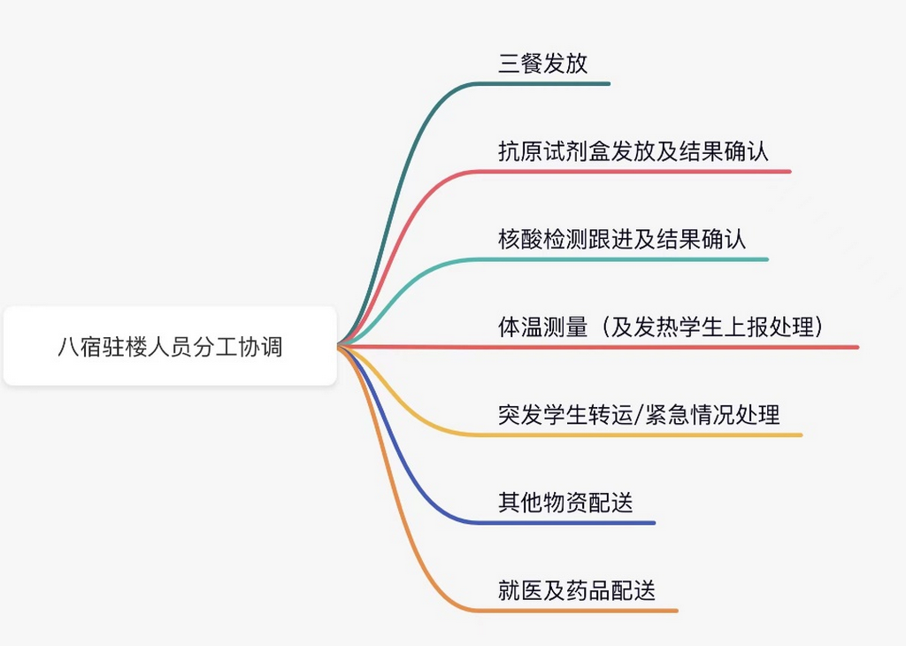 如何为全楼配送餐食、物资?如何应对学生用药等突发情况?如何高效分发抗原?问题细碎,昼夜不宁。学生楼长、层长们开动脑筋、见招拆招,转眼之间,也已有了满满的所得。