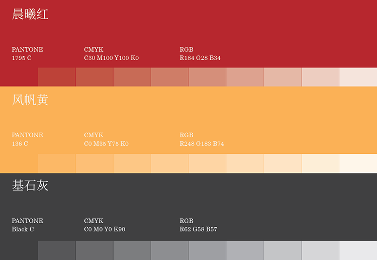 专色(PANTONE):在平面印刷中无需必须使用,依据具体材质工艺而定,色彩以铜板纸四色印刷色彩为准。